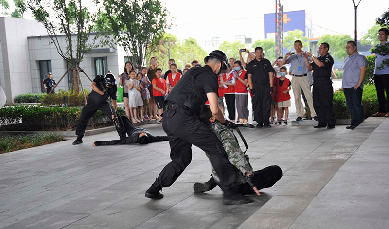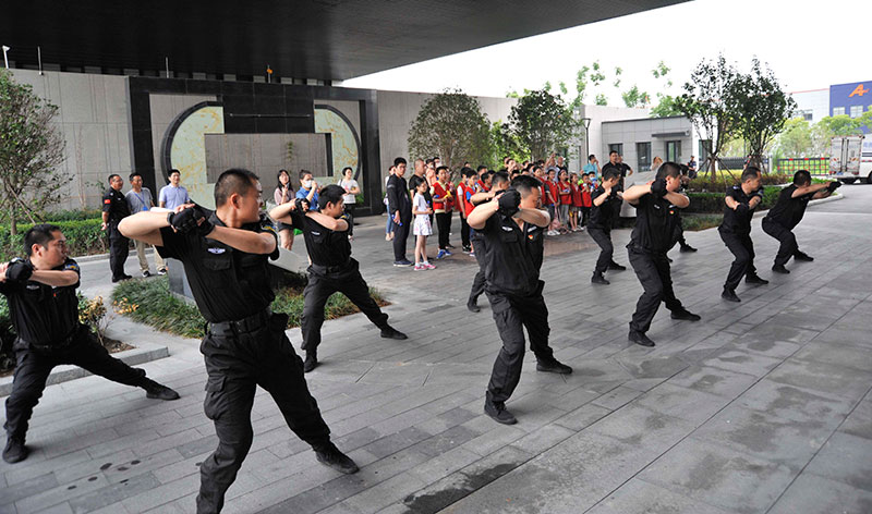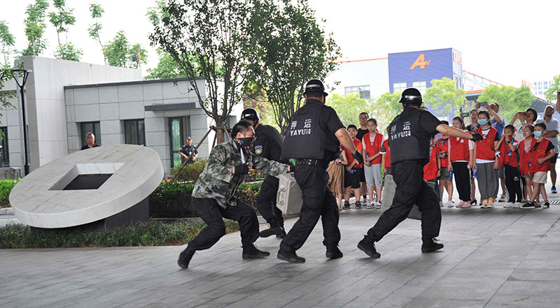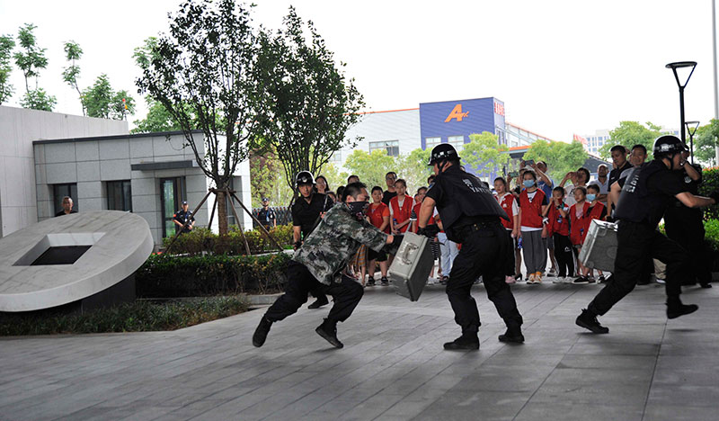 隨后小記者們觀看了押運(yùn)槍械解、擒敵拳表演和運(yùn)鈔車網(wǎng)點(diǎn)交接款箱環(huán)節(jié)防搶劫演練。