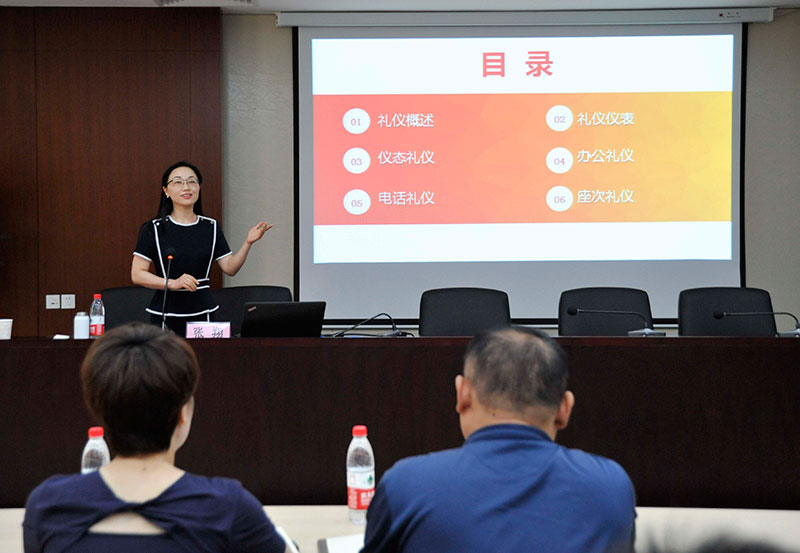 培訓期間,張部長按照國際通用禮儀規(guī)范標準,從禮儀概述、禮儀儀表、儀態(tài)禮儀、辦公禮儀、電話禮儀、座次禮儀六個方面進行了詳細講解。簡潔精練的語言,生動形象的示范,使大家對文明禮儀的規(guī)范要求及重要性有了進一步了解。