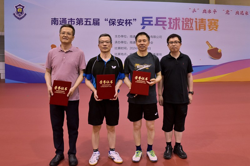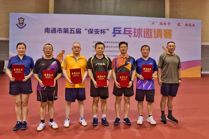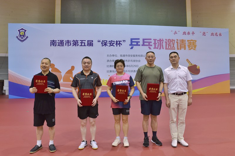 6月29日,南通市第五屆“保安杯”乒乓球邀請賽在開沙島中國乒乓球通州訓(xùn)練基地成功舉辦。賽事由南通市保安服務(wù)有限公司主辦,南通市乒協(xié)承辦。市國資委副主任、二級調(diào)研員于海華,市乒協(xié)主席侯軍,城建集團(tuán)副總經(jīng)理董新平,保安公司董事長方俊,市乒協(xié)副主席、秘書長張進(jìn)出席開幕式。